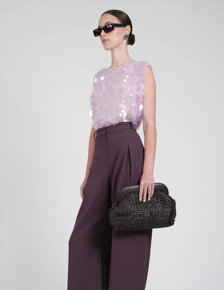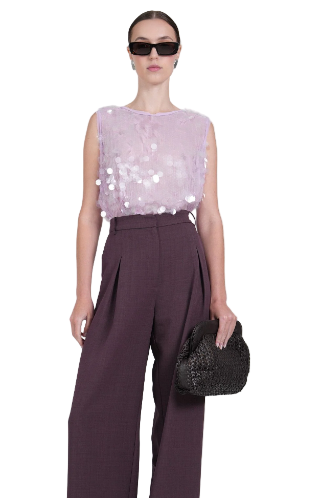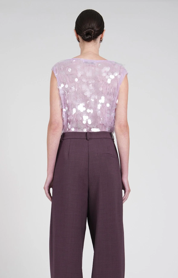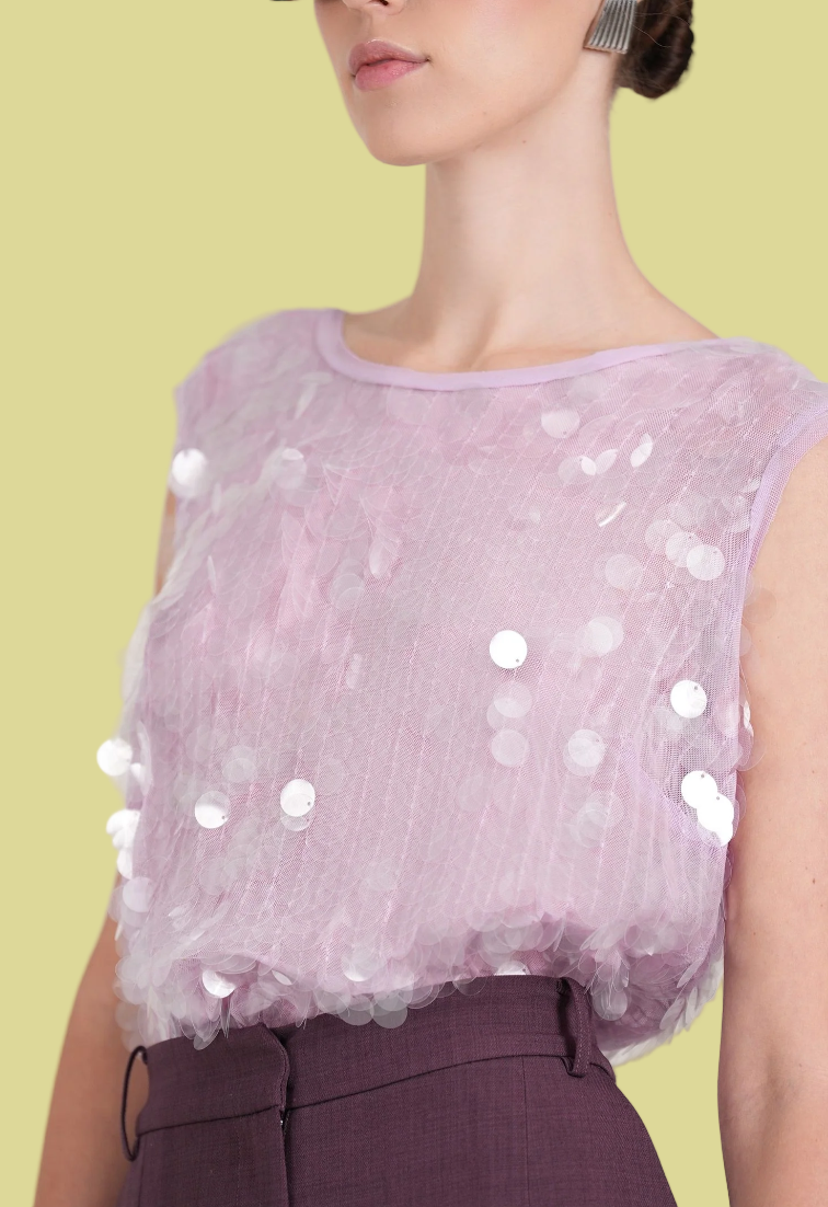 sequin muscle tank crafted in soft lavender monochromatic sequins