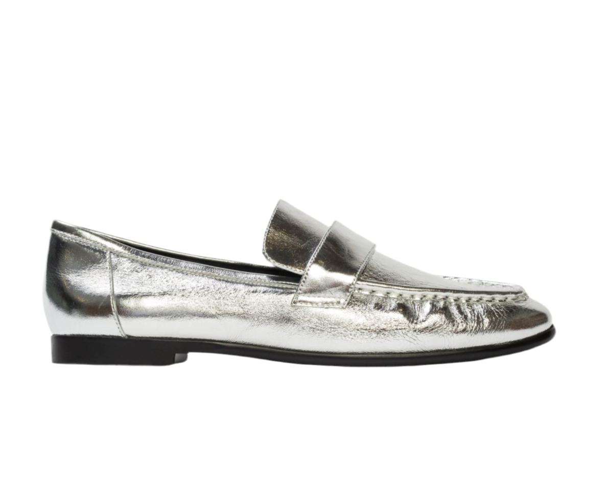 Color: Silver Crinkle Metallic leather