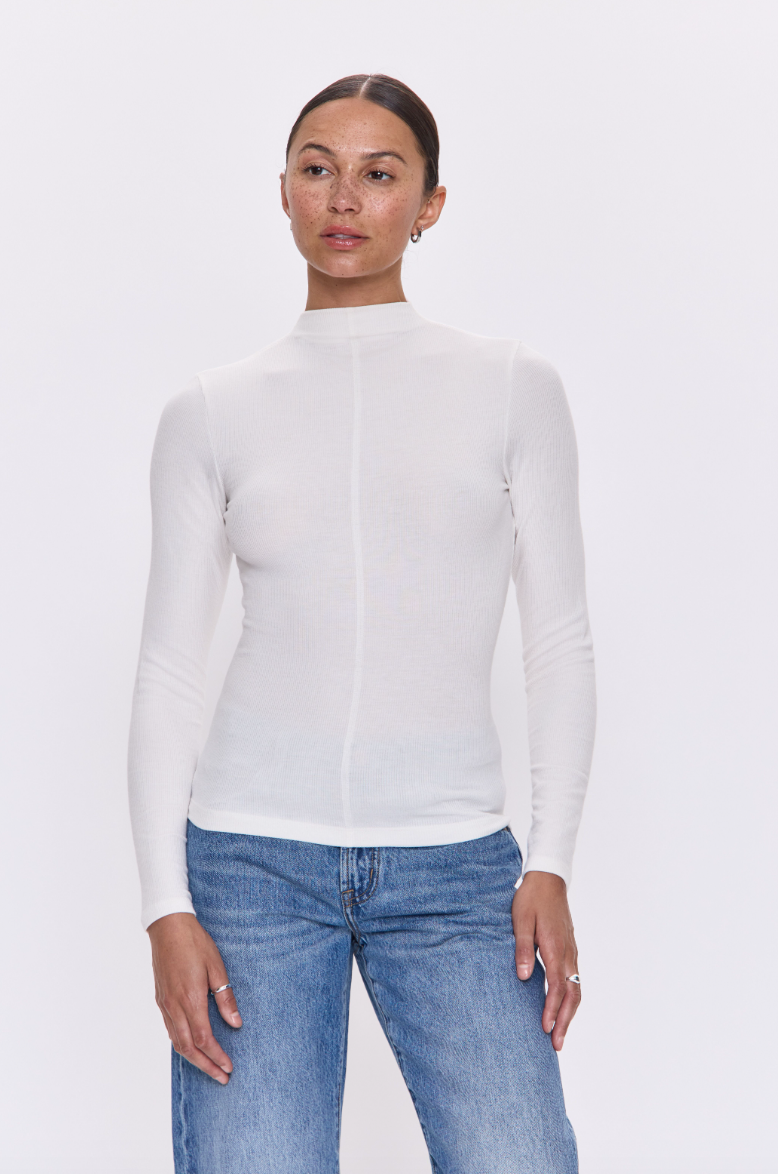 A sleek funnel neckline and second-skin fit that layers seamlessly or stands alone with understated polish. Crafted from our soft modal blend in ecru, it balances stretch and structure for all-day wear. Minimal yet impactful—the kind of top you’ll keep on heavy rotation.