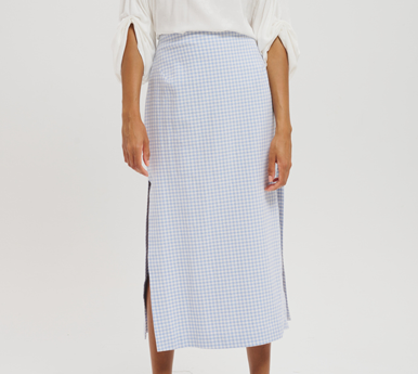 Gingham midi skirt with slit
