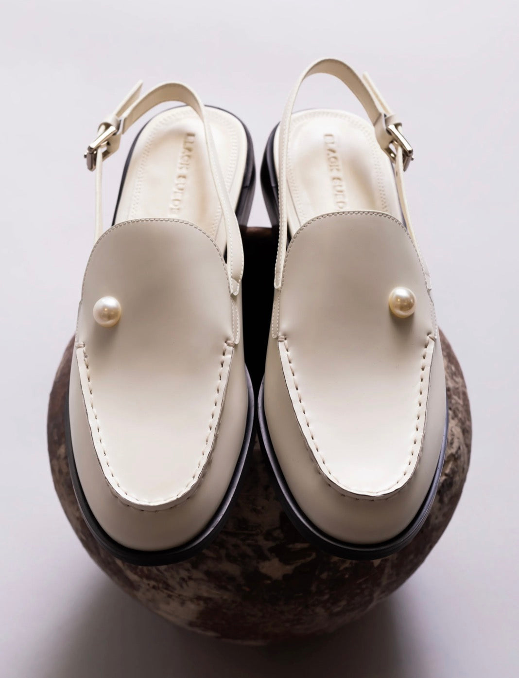 Round-toe slingback loafer with pearl detail, set on a built-up sole