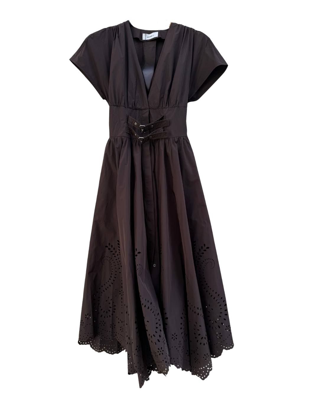 midi brown dress with buckle detail