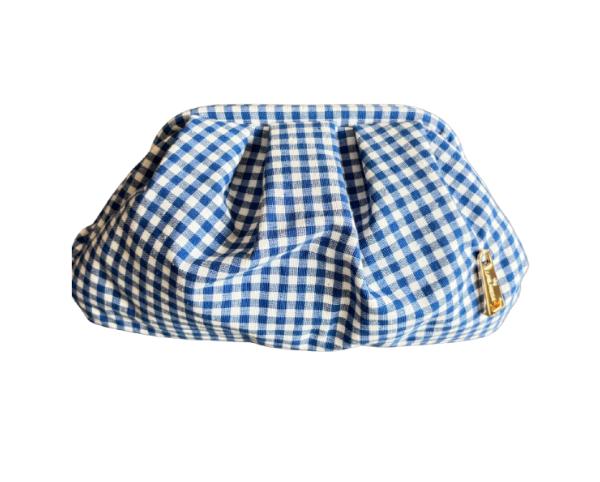 Blue and white gingham clutch