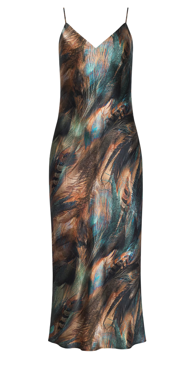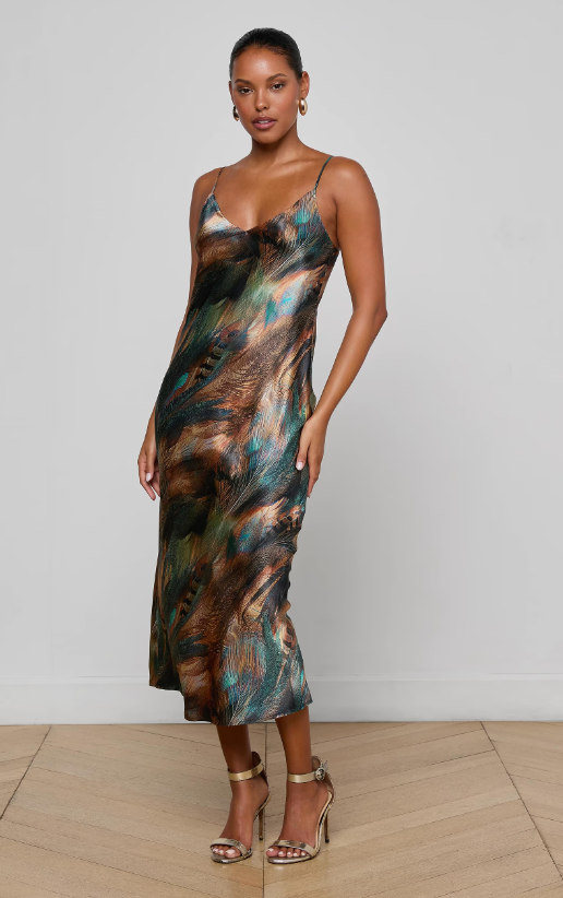 L'agence Seridie Silk Slip Dress in TEAL MULTI MIX FEATHER