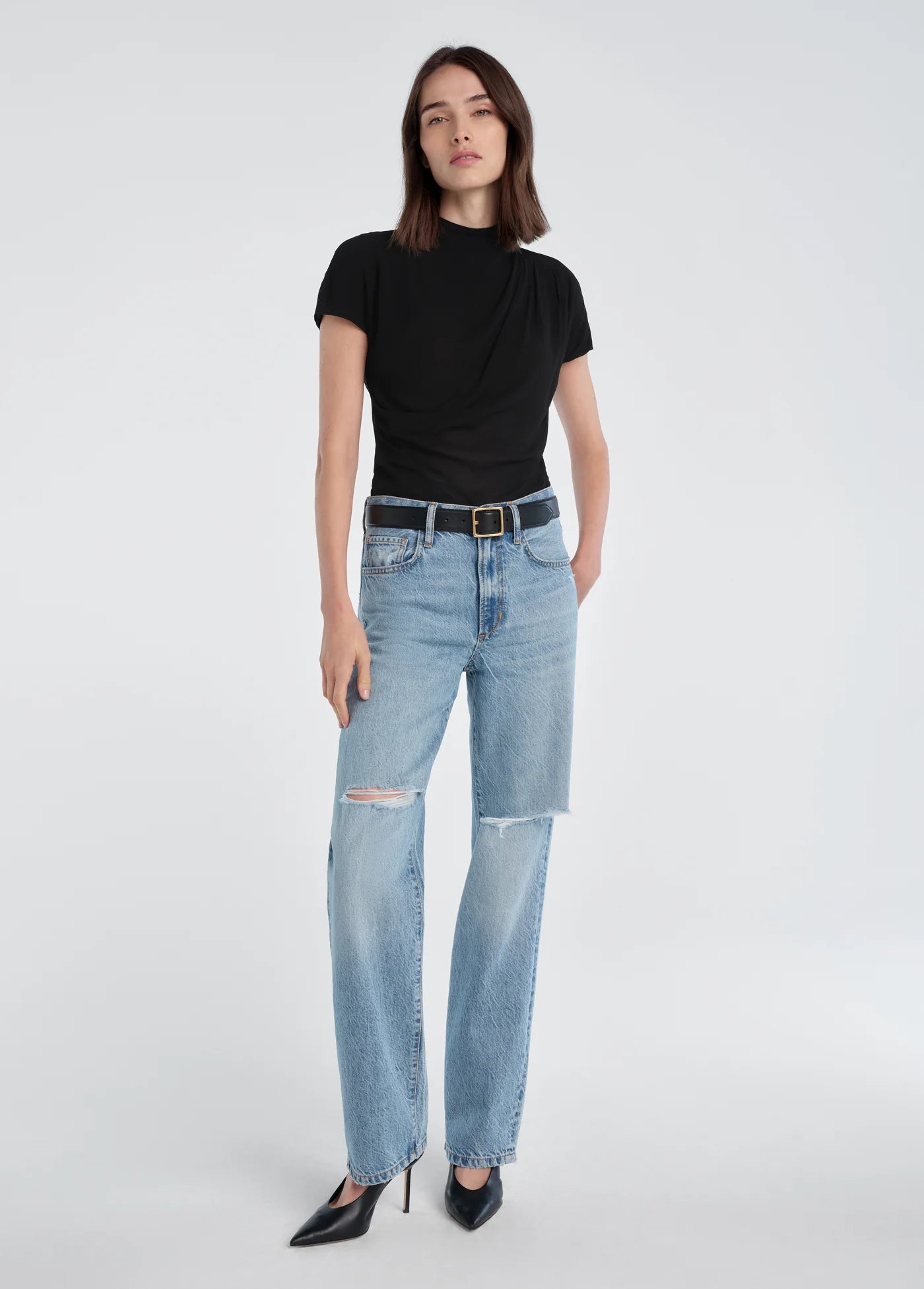 A relaxed boyfriend jean that's easy at the waist and low slung at the hips for a long and loose fit.